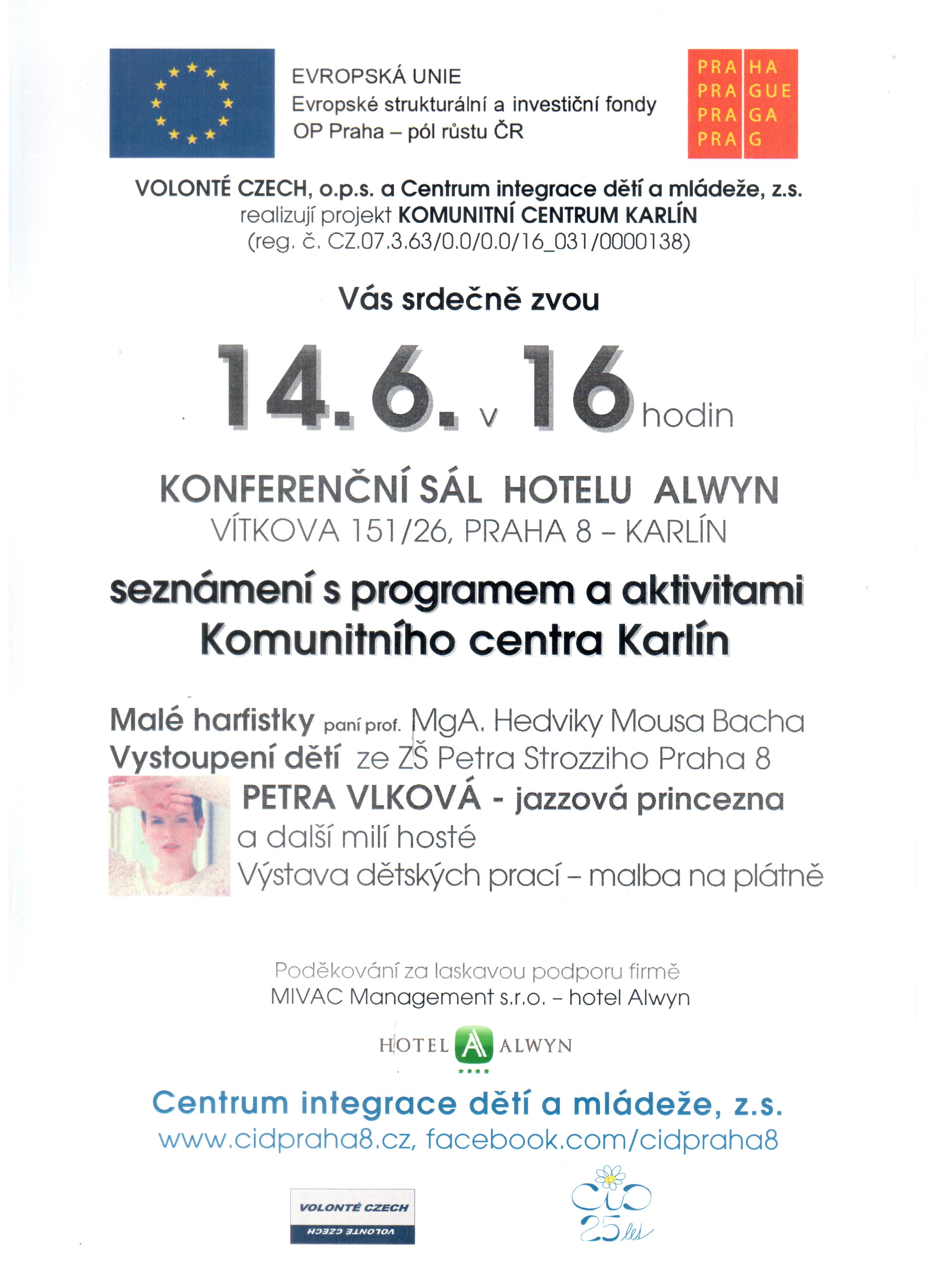 VOLONTÉ CZECH, o.p.s. a Centrum integrace dětí a mládeže, z.s. Vás srdečně zvou na akci, kde Vás seznámíme s programem a aktivitami Komunitního centra Karlín.