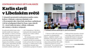 V úžasných prostorách zrekonstruovaného centra kultury a historie s názvem „Libeňský svět“ v Pivovarnické ulici, které bylo otevřeno u příležitosti 120 let od připojení Libně ku Praze, jsme oslavili 31. výročí usilovné práce s dětmi, rodinami, ale i seniory a širokou veřejností.