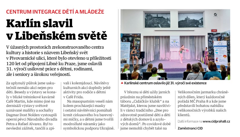Děkujeme za zveřejnění naší zprávy z CID na webu Městské části Praha 8