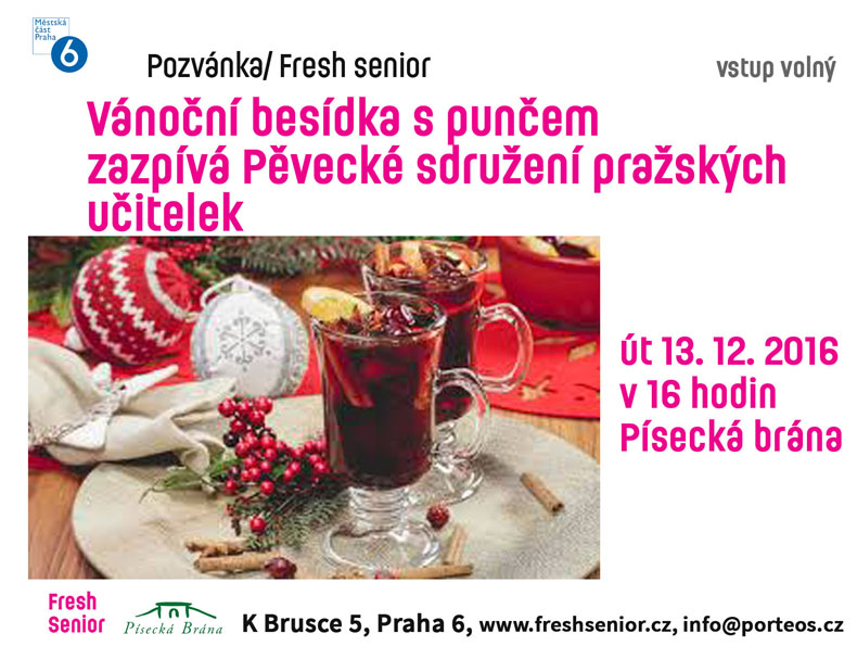 Zveme Vás na Vánoční besídku s punčem, kterou organizuje Fresh senior, a kde zazpívá Pěvecké sdružení pražských učitelek.